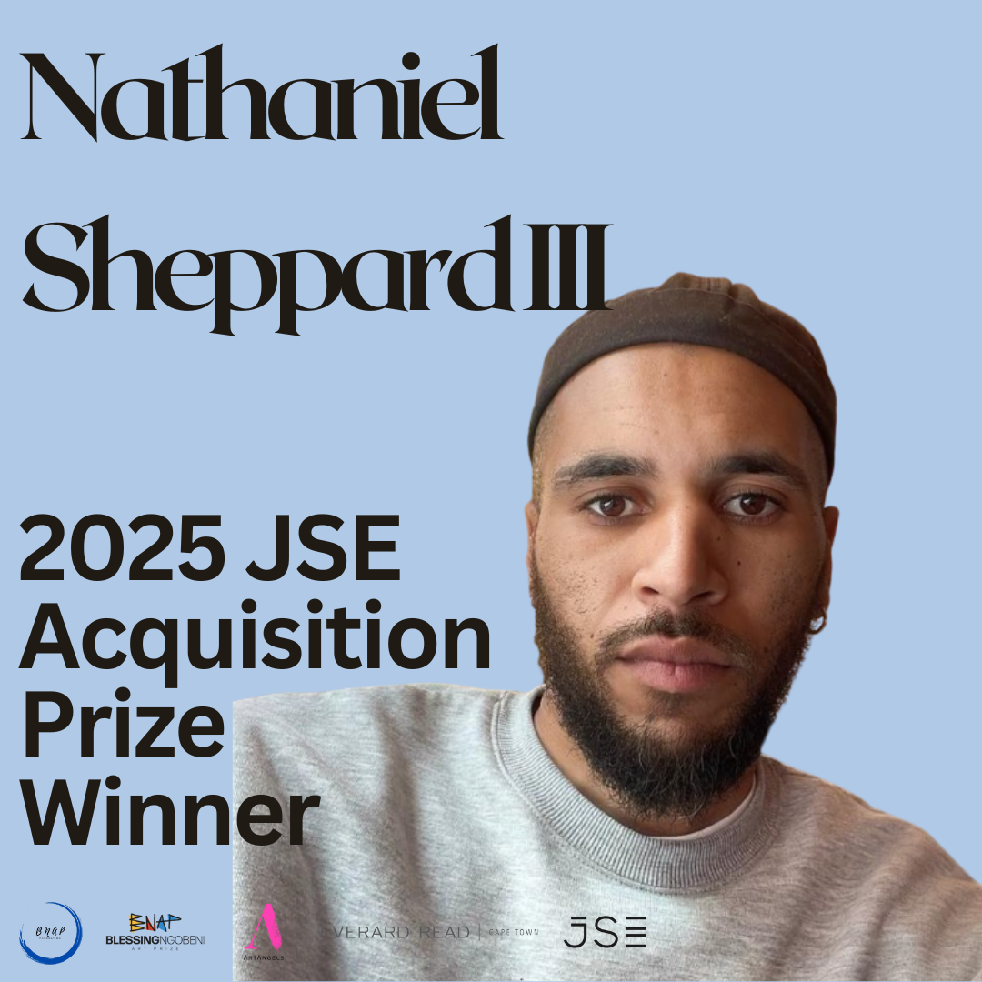 We are proud to announce Nathaniel Sheppard III as the 2025 Winner of the JSE Acquisition Prize. Nathaniel is a painter and master printmaker based in Johannesburg. His artistic practice is deeply rooted in examining the consumption and retelling of histories through storytelling. Utilizing a variety of printmaking techniques, Sheppard expands on his collage practice, treating collage as a note-taking device. His work delves into historical imagery representing Black identities throughout history, spanning from figurative representation to ephemeral printed media. Sheppard's art is a personal interrogation of the historical intersections between his father's African American heritage and his mother's Coloured/Indian South African background. Nathaniel's artwork will now be inducted into the Johannesburg Stock Exchange's private art collection.