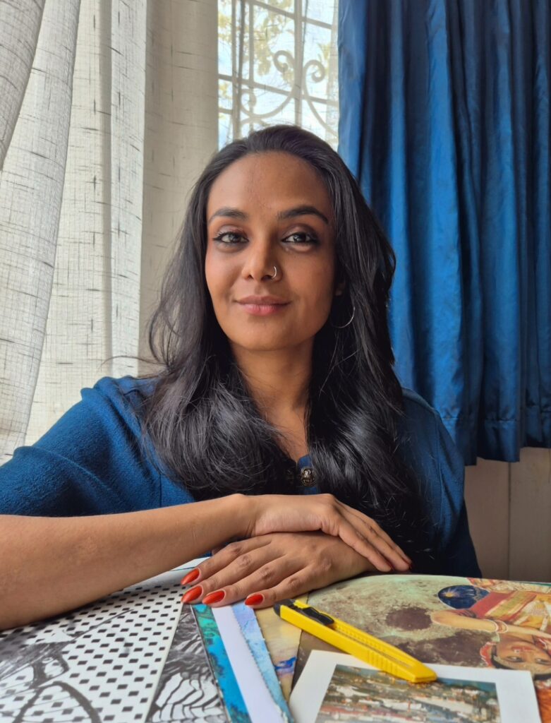 is a self-taught collage artist from Bulawayo whose work is guided by images in discarded books that she cuts out and recontextualises into surreal landscapes. She is a 3rd-generation Gujarati-Zimbabwean woman whose lived experience informs her works. She explores the ways diasporic populations relate to different contexts, developing themes of alienation, adaptation, and belonging.
