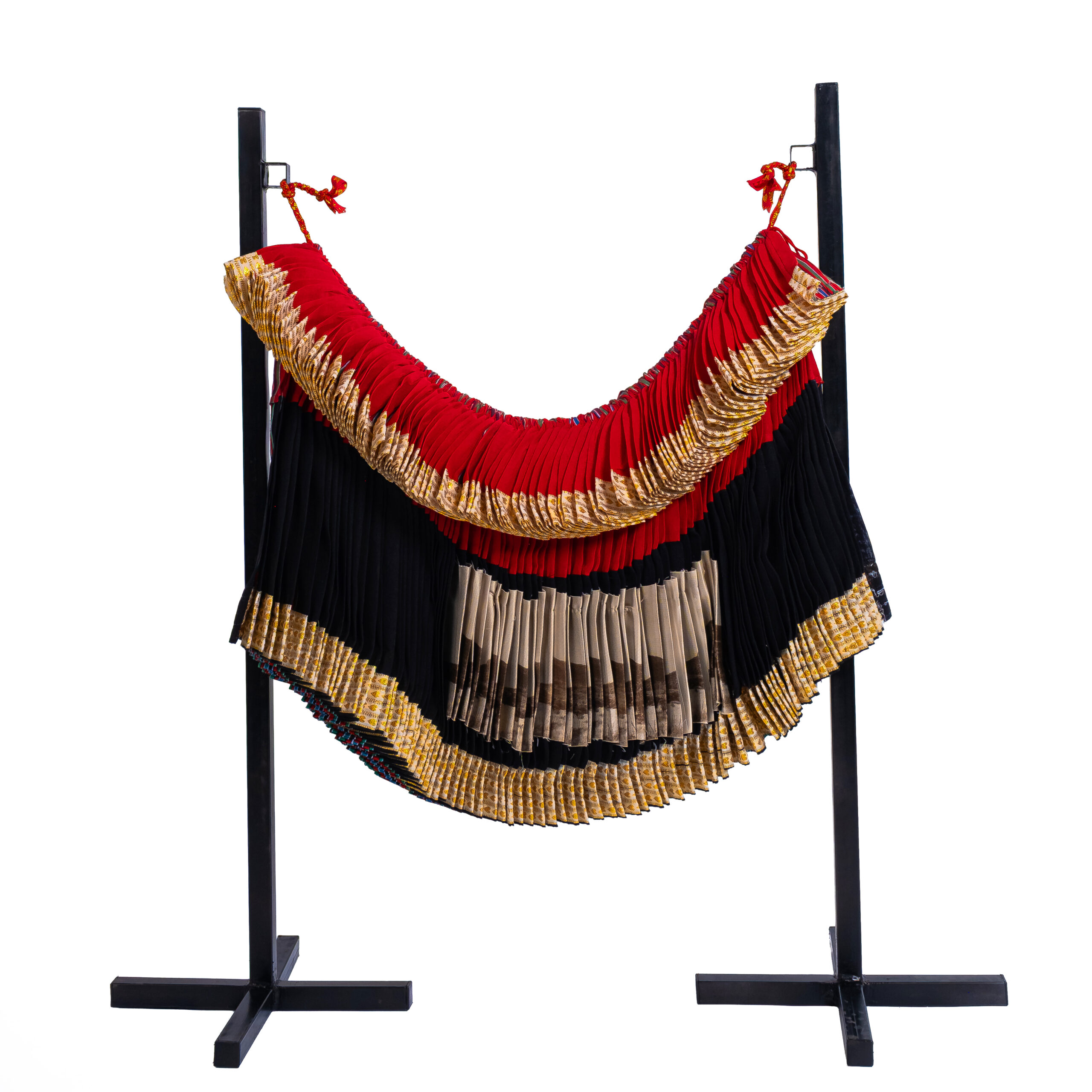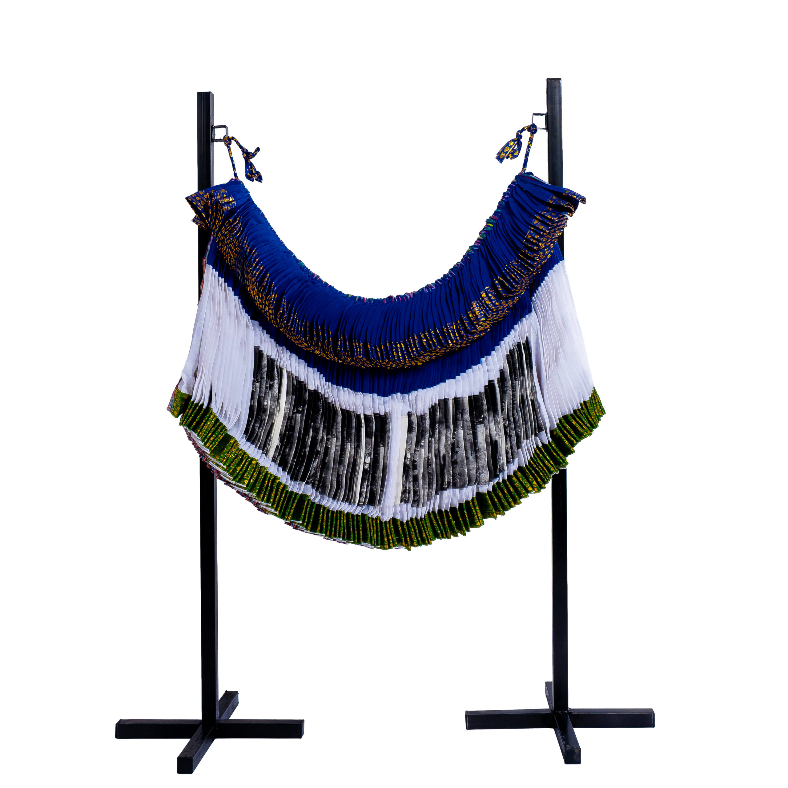 Tshepo Sizwe Phokojoe (b. 1995, Soweto) is a self-taught multidisciplinary artist, with a background in visual arts and fashion. Phokojoe was part of the 2017 Peer mentoring at Assemblage Studios mentored by Brownyn Lace. He has also worked as studio assistant to Nkhensani Rihlampfu and Nicholas Hlobo. Phokojoe has received numerous awards, including the 2017 PPC Imaginarium Merit Award for Fashion, the 2023 Blessing Ngobeni Art Prize and he is the 2023 recipient of Young/Unframed. He currently works and lives in Johannesburg. Exploring the ideas of home, nest, and womb through hessian cloth, the exhibition titled "Woven Comforts" aims to evoke a strong emotional connection and nostalgia. By using hessian cloth as a medium, the show invites visitors to reflect on their inherent human desires for comfort, safety, and belonging. The use of hessian cloth as a canvas allows for these profound concepts to come alive. Intricately woven hessian structures represent the idea of a 'nest', symbolizing the care and warmth associated with creating a haven for oneself and loved ones. Additionally, these structures transport us to marvel at the intricate architectural wonders found in nature. Furthermore, the concept of a 'womb' is delicately portrayed through a human figure covered in hessian cloth. This representation symbolizes the primal source of life, security, and growth. It also prompts contemplation about the origins of life, the sanctuary provided by maternal love, and the endless potential that new beginnings hold.